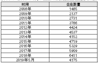 2008年-2009年5月中國進(jìn)口瓶裝酒企業(yè)數(shù)量變化情況