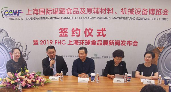 2019年9月27日,中國罐頭工業協會和上海博華國際展覽有限公司聯合舉辦了2020上海國際罐藏食品及原輔料、機械設備博覽會(CCMF)簽約儀式及新聞發布會,同時也進行了2019FHC上海環球食品展的發布。
