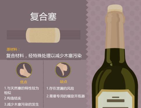 為了保留天然塞的優點,同時減少軟木塞污染的發生,人們制作出另外一種酒塞——復合塞。這種酒塞本身也十分結實,其優點與天然塞相似,且發生軟木塞污染的概率小很多。但無可避免的是,使用這種酒塞依然存在泄漏的風險。此外,它也需要專門的開瓶器。