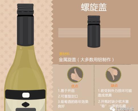 上世紀70年代,一些酒商深受軟木塞污染的困擾,開始嘗試用螺旋蓋來封瓶。采用螺旋蓋封瓶的葡萄酒無需任何開瓶器便能輕松開啟。這種瓶塞不存在木塞污染,且溫度和濕度的變化幾乎不會給螺旋蓋帶來任何影響。如果一瓶葡萄酒開瓶后還沒飲用完,只需重新蓋上螺旋蓋即可。另外,使用螺旋蓋封瓶的葡萄酒在存放的時候不需要水平放置,許多葡萄酒還能在瓶中很好地陳年。
