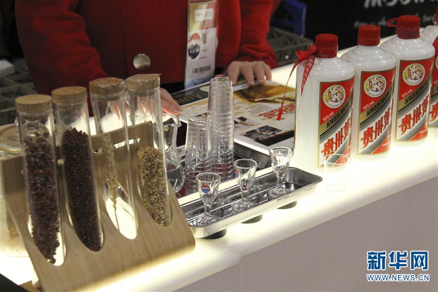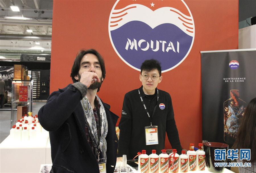 這是2月12日在法國(guó)巴黎國(guó)際葡萄酒及烈酒博覽會(huì)上拍攝的貴州茅臺(tái)酒展臺(tái)。 新華社記者 徐永春 攝