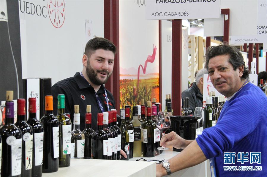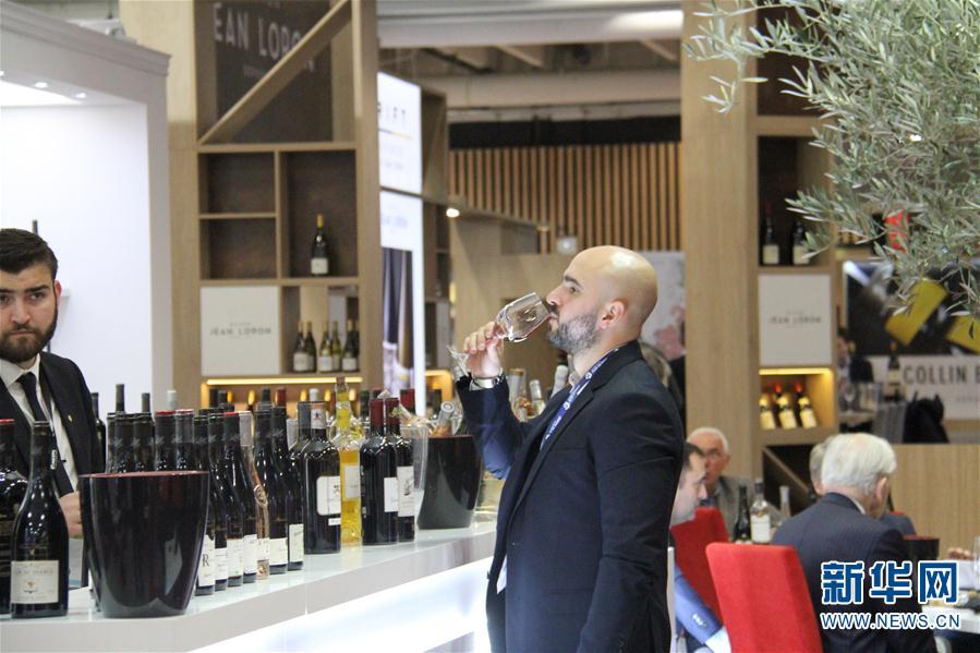 2月12日,在法國(guó)巴黎國(guó)際葡萄酒及烈酒博覽會(huì)上,一名男子品嘗紅酒。 新華社記者 徐永春 攝
