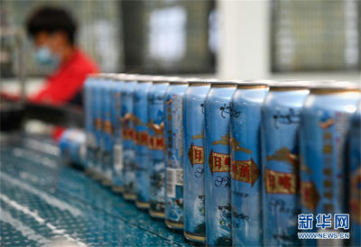 西藏日喀則啤酒廠員工在生產車間內工作(8月25日攝)。西藏日喀則啤酒廠是由當地人創辦的一家啤酒廠。啤酒廠靠山而建,水源來自海拔4200米的山泉水。該廠現擁有全套自動化生產車間、灌裝車間、發酵車間等。據介紹,啤酒廠現吸納當地近30名群眾、20余名職業技術學校畢業的人員就業,還有5名來自百威英博啤酒公司的釀酒師作為技術指導。